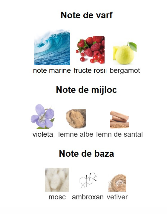 •    Note de varf: note marine, fructe rosii si bergamot;