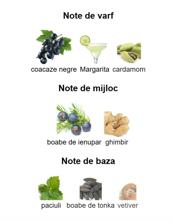 •    Notele de varf: coacaze negre, Margarita si cardamom;