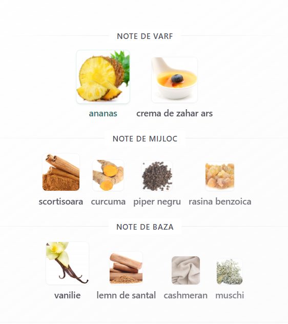Note de Mijloc: Scorțișoară, Turmeric, Piper Negru