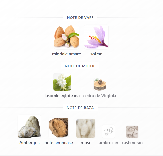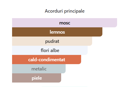 Oriental-Ambrat-Dulce, sofisticat, seducător, modern. Unisex, dar cu o ușoară înclinație spre un caracter cald și senzual.
