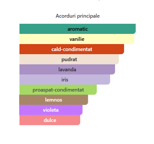 Finalul este catifelat și persistent. Vanilia și ambra creează o bază caldă și dulce, lemnul de cedru adaugă structură și echilibru, iar moscul rotunjește parfumul cu o notă senzuală și elegantă.