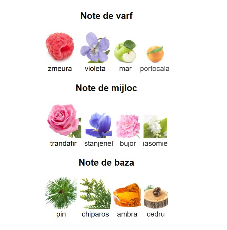 • Notele de baza: pin, chiparos, ambra si cedru.