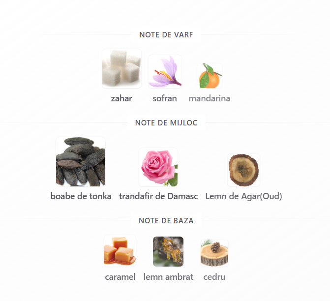 Note de Bază: Mosc Alb, Lemn de Santal, Vanilie, Patchouli.